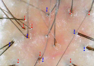 단위 면적당(1㎠) 모낭과 모발 개수를